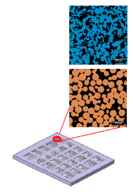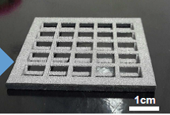 Figure 2: example of a grid (made by EBM) filled either by spherical or irregular partially sintered metallic powders.