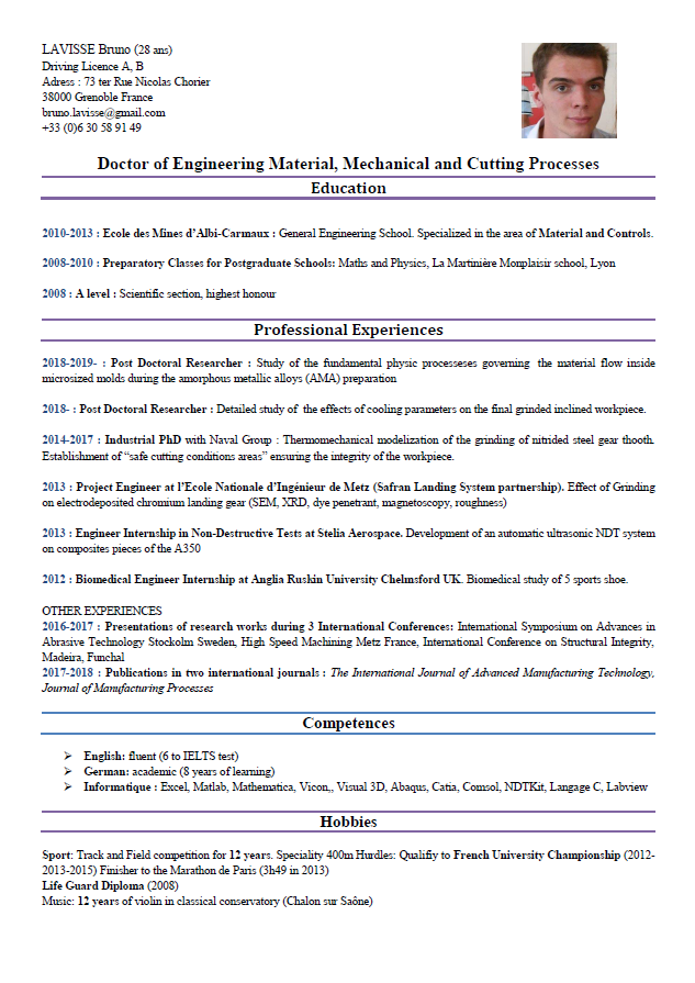 Post Doctoral works (2018) LEM3 Université de Lorraine: