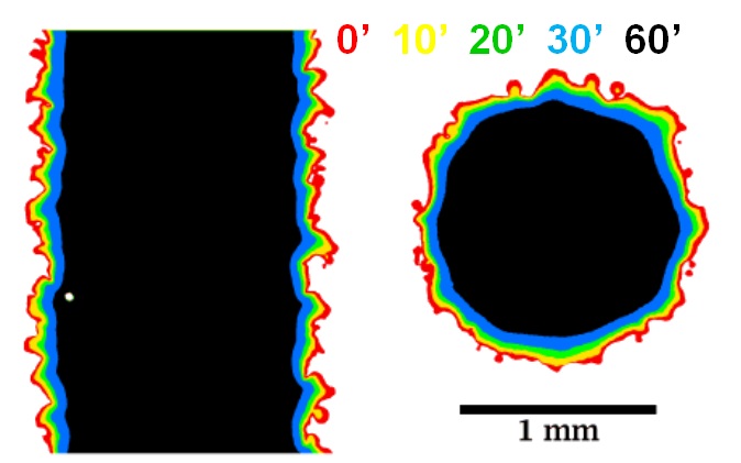 Effect of chemical etching on a single vertical strut as a function of the etching time.