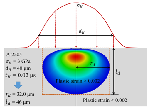 Cavitation erosion occurs when multiple bubbles collapse near a solid surface. During the bubble collapse, a fast reintrant jet impacts the surface and creates a deformation pit.