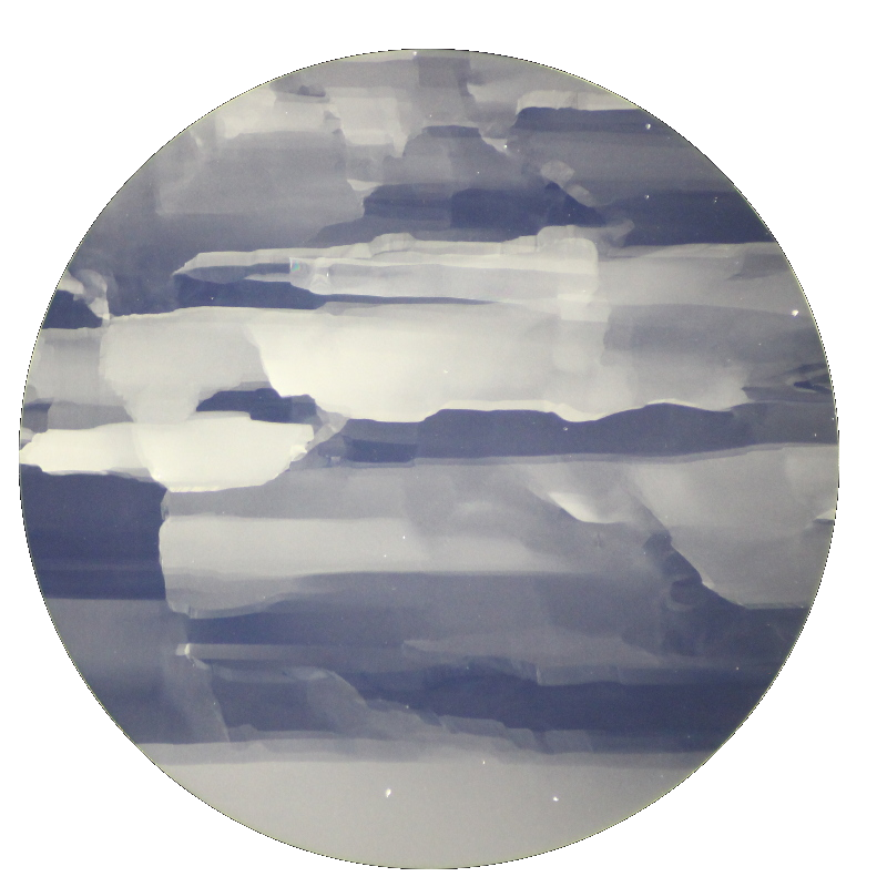 La biréfringence du saphir permet, sous lumière polarisée, de mettre en évidence les désorientations au sein d'un cristal. Cette photographie en est l'exemple sur un disque de saphir obtenu par croissance Verneuil.