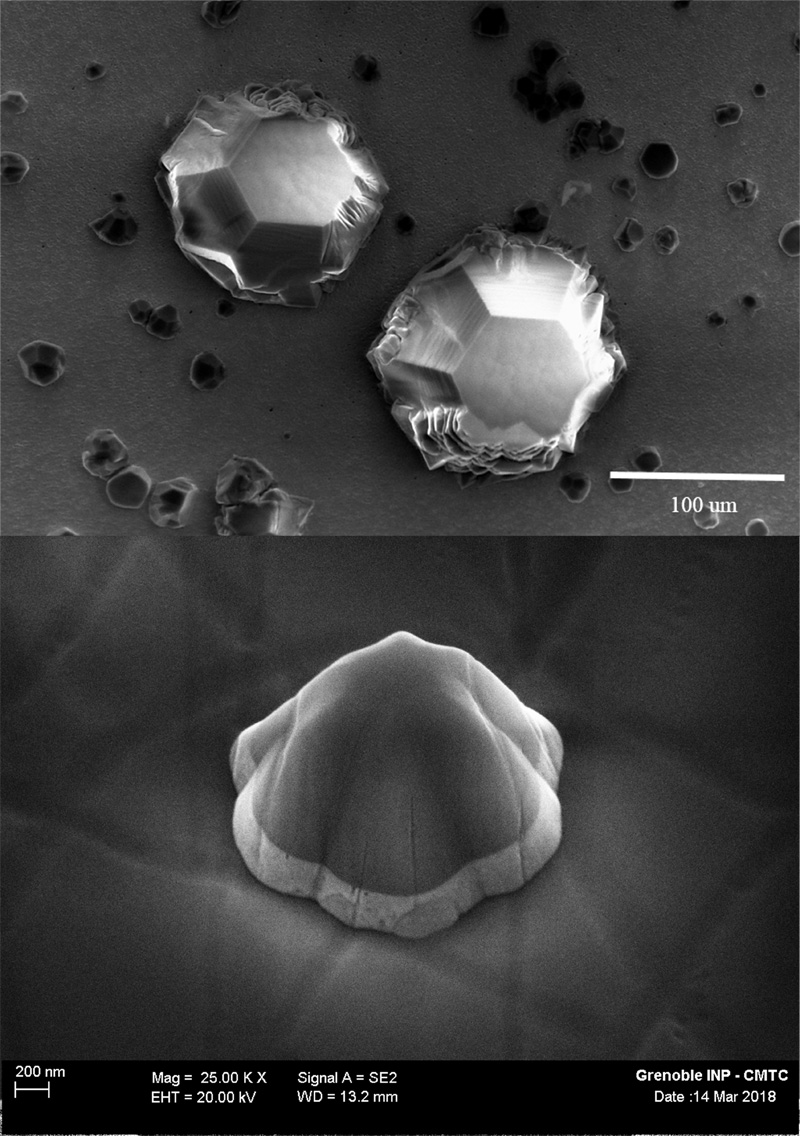 Flan d'AlN Il s'agit d'un monocristal d'AlN épitaxié sur saphir ayant pris une forme de flan suite à une gravure ICP chloré.