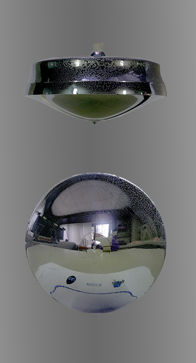 L’image montre un cristal de silicium d’un diamètre de 140 mm obtenu au laboratoire SIMaP-EPM en utilisant la technique de croissance Kyropoulos. Une forme carrée particulière est visible sur la surface inférieure du lingot, résultante d’une croissance facettée délimitée par les facettes (111) du silicium.